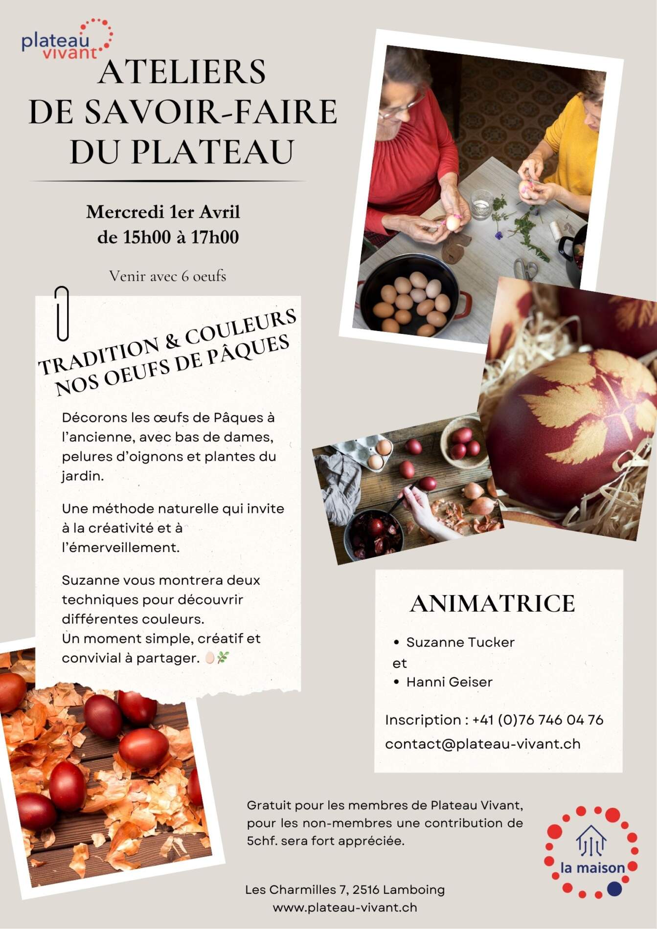 Un atelier de 2 heures avec Suzanne Tucker et Hanni Geiser qui partageront avec vous cette belle tradition.