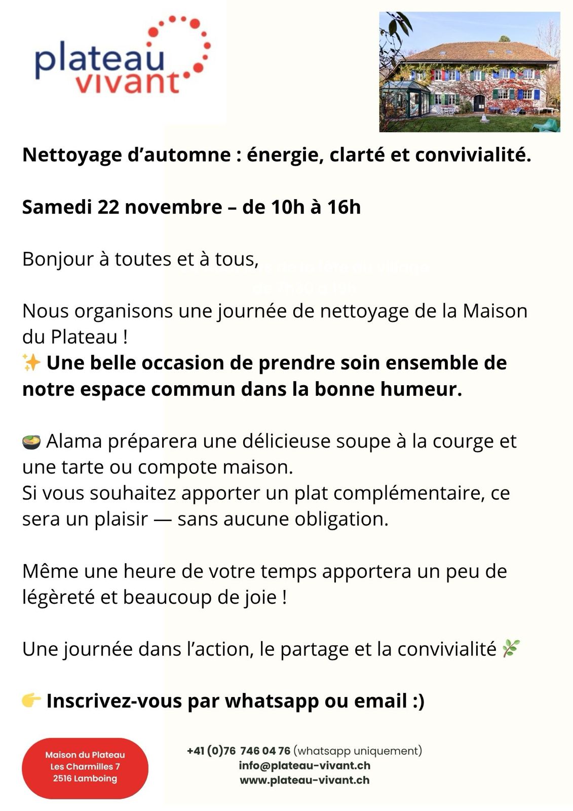 Nous organisons une journée de nettoyage de la Maison du Plateau !